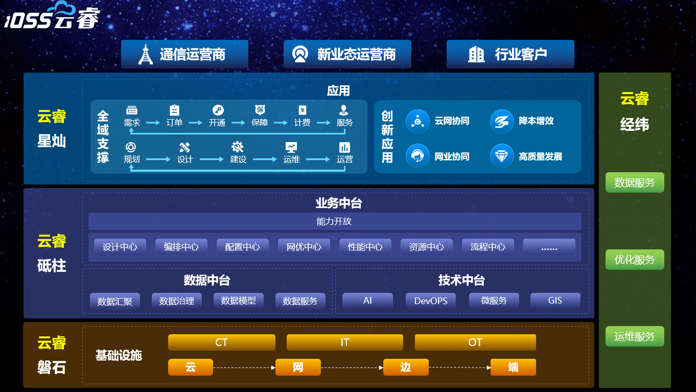 ■澳门十大棋牌排行榜最新■iOSS云睿包括4大方向,涵盖通信运营商所需要的核心场景和能力:云睿磐石、云睿砥柱、云睿星灿、云睿经纬。