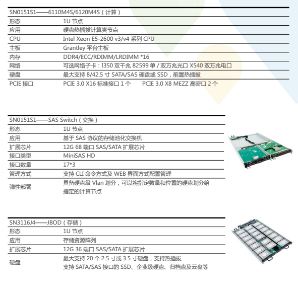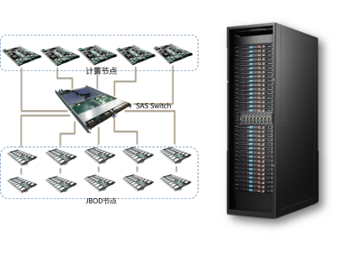 采用业界标准SAS基础架构的 ■澳门十大棋牌排行榜最新■SAS Switch,可给予分等级存储的解决方案,整个设备仅占用1U ■澳门十大棋牌排行榜最新■整机柜服务器SR系统节点空间,上行与SAS卡或计算节点相连,下行连接JBOD或直接挂接硬盘等存储设备,整体可连接超过200个存储设备,打造15PB以上的超大存储池。